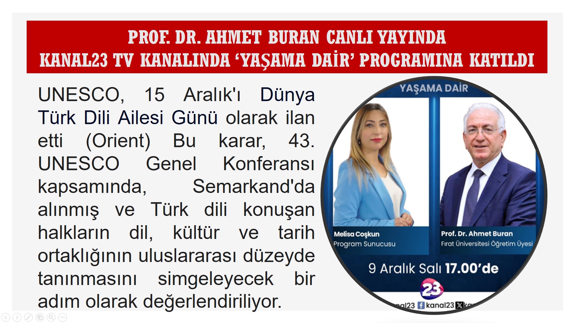 PROF. DR. AHMET BURAN CANLI YAYINDA 15 ...