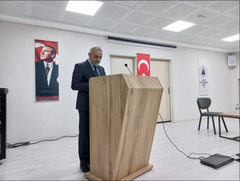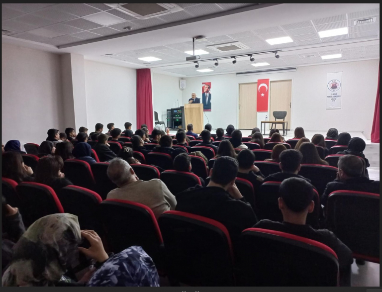 Liseli gençlerle, Elazığ Fatih Anadolu Lisesi'nde "Mehmet Akif Ersoy'un Vatan Sevgisi" konulu söyleşide buluşan Fakültemiz Türk Dili ve Edebiyatı Bölümü Öğretim Üyesi Prof. Dr. Mutlu DEVECİ, öğrencilere, "Mehmet Akif'te vatan kavramı, özgürlük tutkusu ve bayrak sevgisi ile koşut algılanan, uğruna canlar verilen manevi değerlerden biri olduğunu ve Akif'e göre vatanın, toprak diye basılıp geçilmeyecek, her karışı şehit kanları ile sulanmış ve binlerce kefesiz şehitten miras kalmış cennet bir vatan olduğunu" ifade etmiştir.
