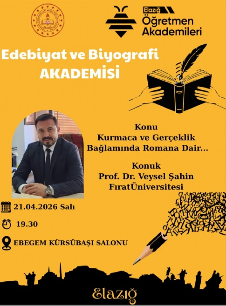 Bu kapsamda Fakültemiz Türk Dili ve Edebiyatı Bölümü Öğretim Üyesi Prof. Dr. Veysel ŞAHİN 21 Nisan 2026 tarihinde saat 19.30'da EBEGEM Kürsübaşı Salonunda Edebiyat ve Biyografi Akademisi başlığı altında "KURMACA VE GERÇEKLİK BAĞLAMINDA ROMANA DAİR…" konusunda öğretmenlerimizi bilgilendirmiştir.