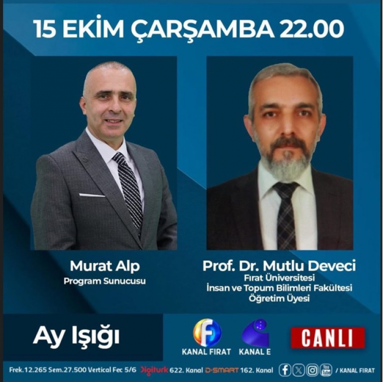 Fakültemiz Türk Dili ve Edebiyatı Bölümü Öğretim Üyesi Prof. Dr. Mutlu DEVECİ, Kanal Fırat ve Kanal E ortak ...
