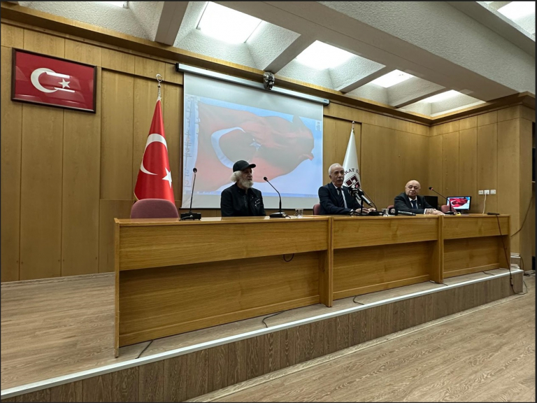 Edebiyat Öğrenci Topluluğu tarafından 17 Ekim 2025 Cuma günü, saat 14.00'da, Prof. Dr. Bahaeddin Ögel Konferans Salonunda moderatörlüğünü Fakültemiz Türk Dili ve Edebiyatı Bölümü Emekli Öğretim Üyesi Prof. Dr. Ahat ÜSTÜNER'in yaptığı, Türk Edebiyatı Vakfı Yönetim Kurulu Başkanı Serhat KABAKLI ve Şair-Yazar ve Sanat Yönetmeni Süleyman BAYDİLİ'nin konuşmacı olarak katıldığı panel; İstiklal Marşı ve Saygı duruşu ile başlamıştır.